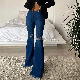 European and American Women′s Jeans Holes Show Thin Wash Ladies Jeans Trousers