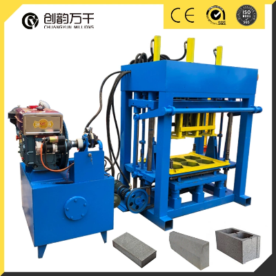 Offer Qt4-30 Manual Hydraulic diesel Concrete Brick Making Machine Cement Paving Block Machine 1. Advantages:1. Diesel Engine Power (Electric Option Available)2. Hydraulic Press, High Strength of Block and Colored Paver3. Produce sizes of hollow block, solid brick, hourdis, interlocking paver and curbstone by changing molds4. Suitable For Medium and Small-Scale Block Factory2. Electric Power List of QT4-30 diesel engine hydraulic cement brick making line No.Name of MachinePowerDescriptionAQT4-30 Block Machine15HP1. Diesel Power: 15HP2. Oil Consumption 3L/Hour3. Hydraulic Press: 21MPa4. Pallet Size: 850*550*20mmBJQ350D Diesel Mixer10HP1. Diesel Power: 10HP2. OIl Consumption: 2L/Hour3. Capacity; 350L BarrowsWithoutCarry fresh block to curing sitesTotal: QT4-30 block making line total power is 20HP 3. Main technical parameterQT4-30 diesel hydraulic paving block machine technical parameter Dimension of host machine1850x1330x2150 (LxWxH)total machine power13.34 kW(18.0 HP) 2200 r/mincycle per mould30sDimension of diesel engine hydraulic station1400x900x1320mm (LxWxH)Diesel engine specificationChangchai ZS1105Weight1300KGSPallet size850x550x20mmBlock typeblock, paver, curbstone and so onOil consumption2L/HDiesel engine starting modeElectric startRated pressure15MpaVibration force30KN3. Worker Numbers : 4-5 WorkersTwo Workers to load material into mixerOne Worker to operate block machine and add pallet to block machineOne or Two Workers to carry fresh blocks to curing sites.4. Factory Area for QT4-30 cement brick making line: 600-1000M2Shelter for Machines: 30M2 (6*5mm)5. Pallet Number: 600pcs pallet for QT4-30 diesel hydraulic hollow brick machine.Bamboo pallet, fiber (GMT) pallet and PVC pallet are available. According to Experiences and Feedback from our customers, we recommend you the Fiber Pallet:Need any information and updated price, please send inquiry. We looking forward to growing with you! /* March 10, 2023 17:59:20 */!function(){function s(e,r){var a,o={};try{e&&e.split(",").forEach(function(e,t){e&&(a=e.match(/(.*?):(.*)$/))&&1