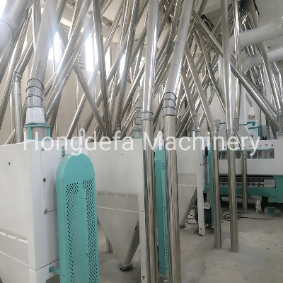 European standards 80-120t/d wheat flour mill wheat milling machine1. Capacity: processing Wheat flour Mill in Africa For Producing Barkery Flour.2. Final products: bakery flour, superfine flour, wheat meal, pasta, and so on.3. By-product: wheat bran for Animal feed.Product NameSuperfine flour by 80-120t per day wheat milling machine.Materialhard wheat, soft wheat, and durum wheat.PowerElectricity 220V/380V/440V 3phase 50Hz/60HzWorkshop sizeLength:42M Width:10M Height:12Msuccessful projectEthiopia, Brazil, Djibouti, Egypt, and so on for wheat flour mills. . It is the 120t/24h wheat flour mill plant is running in Africa.Let us show our new design with stainless steel pipes for 120t per day wheat milling machine.This 120t/24h wheat flour mill machine is installed in our factory, we can show you when you come.-----Main Machines which is very most important in the wheat flour mill.A. Roller Mills in the wheat flour mill machine.1)The partitioned paneling and swing-out feed module guarantee ideal access to the feeding and grinding rolls. This makes residue-free cleaning possible.2) a pulse generator automatically adjusts the feed material at the entrance door3) bearing 4)Sensor: OmronB. Plan sifter in the wheat flour mill machine1) Material: High-strength alloy steel 2)up and down sifter circles with steel plate overall by bending 3)Transmission system using spring force component institutions 4)Sieve frames of wood coated with synthetic resin, without backfire 5)All the inside walls, as well as the doors, are provided with high-grade insulation 6)Vertical and horizontal clamping system.C. PLC Control system in the wheat flour mill machine.It is working with CCTV surveillance systems to realize seamless integration by controlling all the wheat milling plant. Here is the flow chart for the milling section includes the automatic roller mill, plan sifter, dust collector, packing machines.it is the main section in the wheat milling plant production line.We can talk with each other face to face for confirming all the details for the wheat milling plant with our technician team.Loading & Shipping 1. We will pack the machine by the protect film inner, water-repellent plastic outside.2. wood packing is necessary if send in less than a container.3. The wheat milling plant will be fixed by steel rope in the container.Make sure it is in good condition when arrived destination.Main Feature of wheat mill machine1) full automatic roller mill 2) Plan sifter with High-strength alloy steel,3) Steel stainless pipes for long time life working.4) wheat cleaning machine can clean all the impurity. 5) online scale can checking how many tons of wheat will be processed in 24 hours.Final ProductOur wheat flour mill machine can produce different sizes of wheat flour, wheat meal, fine flour, brown flour. and the final product can make bread, cake, biscuits, pasta and so on.FLOUR EXTRACTION: TO PRODUCE STANDARD FLOUR:75-82%TO PRODUCE GRADE 2 FLOUR:70 -75%TO PRODUCE GRADE 1 FLOUR: 60-68%Ash:to produce grade 2 flour: 0.80%(dry weight) to produce grade 1 flour: 0.70%(dry weight)---Sale and Service NetworkHongdefa has sold more than 500 sets of wheat flour mill machine and maize milling plant to different countries, such as Ethiopia, Kenya, Zambia, Uganda, Malawi, Tanzania, Zimbabwe, Nigeria, Angola, South Africa, etc.CountryFlour Mill ProjectsEgypt500t/24h wheat flour mill machineBrazil250t/24h wheat flour mill; 80t/24h wheat mill; 60t/24h wheat flour millPakistan200t/24h wheat flour mill machine; 80t/24h flour mill machineEthiopia300t/24h wheat mill; 200t/24h wheat mill; 150t/24h flour mill; 80t/24h flour mill; 60t/24h flour mill; 40t/24h flour millZambia200t/24h wheat flour milling machineKenya150t/24h wheat flour milling plantZimbabwe300t/24h wheat flour mill plant; 200t/24h wheat flour mill plantSwaziland120t/24h wheat flour milling machineMali120t/24h wheat mill; 80t/24h flour millArgentina80t/24h wheat mill; 50t/24h wheat millVenezuela150t/24h wheat flour mill; 120t/24h wheat millBolivia50t/24h wheat flour mill machineThis is a complete line, which include the wheat cleaning, milling section, and packing section, and also have the micro-doser. The moisture damper is stainless steel, and the pipe is also stainless steel, the moisture bin is stainless steel.Other capacities maize mill machine and wheat mill machineOur projects are all over the world, such as in Zambia, Uganda, Ethiopia, Angola, South Africa, Malawi, Zimbabwe, Kenya, Nigeria, Congo, Cameroon, Mozambique, Namibia, Egypt, Pakistan, India, Thailand, Argentina, Brazil,Peru, etc.LoadingHongdefa factory loading the wheat flour milling machinery. Clients can also visit our factory and watch the wheat flour milling machines' loading.FAQ:Q1. Can the wheat flour milling machinery also process maize?No,it is because the maize and wheat Physical Characteristics are different,like the shape,the hardness,all are different,and the final product flour size is also different. The cleaner,