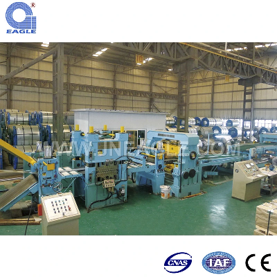 Rotary shear line ERCL-2X800 This rotary shear is suitable for hot rolling carbon steel, tinplates, stainless steel, and other metal with coated surfaces. It is widely used in home appliances, automobiles, hardware, steel products and other industries. This rotary shear adopts 6H leveler to carry out continuous leveling of the panels. With two stacking devices, this rotary shear has a high working efficiency. It is capable of shearing 150 plates per minute, with a maximum running speed of 80 meters per minute. With 6H leveler, the processed plates are smooth and free of scrapes. This ERCL rotary shear usually consists of a uncoiler, a leveler, meter encoder, feed roll, rotary shear, conveyor belt and stacker. Application in cold rolled carbon steel, silicon Steel, tinplate, Stainless steel and pre-painted material etc. Structure of Rotary Shear: Dual Rotary Type1. The cutting part of our rotary shear is comprised of an upper blade holder and a lower blade holder. The two slide holders carry out synchronous rotation and are connected to a linear guide rail. When the crankshaft rotates, the cutting station cuts and conveys the material.2. The upper blade is of rectangular shape and the lower one is of "V" shape. They are made of Cr12MoV. The upper slide rest can be conveniently adjusted to change the cutting clearance.3. The drive motor of this rotary shear is AC servo spindle motor (55 kw, 500rpm). It is connected to the transmission shaft with a conical connector, which has the capability of enduring frequent impact. Parameters of Rotary Shear Model/ ItemsThickness (mm)Width (mm)Shearing Accuracy (mm)Max. Line Speed m/minMax. Cutting Speed (spm)Coil Weight (ton)ERCL-2x6500.2-2100-650±0.3/1000mm601508ERCL-2x8000.2-2100-800601508ERCL-2x13000.3-2400-13007015015ERCL-2x16000.3-2400-16007015015ERCL-3x16000.4-3400-16007012015Transaction procedure:Inquiry - Project - Sign - Production - Inspection - Payment - Transportation - Installation& Commissioning - GuarantyJinan Eagle CNC Machine Co., Ltd (briefly JEM), located in Jinan city, Shandong Province, China, was founded in 2003. It is mainly engaged in developing and manufacturing of Cut to Length Line, Slitting Line, Rotary Shear, Slitting and Cut to Length Combined Line, Leveling Machine, Tension Leveler and so on. Our products are widely used in transfomer, motor, household appliance, automobiles, hardware, steel industries, etc. It can be used for processing cold and hot rolled steell, carbon steel, galvanized steel, silicon steel, tinplate, stainless steel, pre-painted steel, aluminium, copper and other metals.Domestic customers include First Automotive Works (FAW), Second Automotive Works, Great Wall Automobile, Bao Steel, Anshan Steel, Handan Steel, Midea Group etc, and many of coil processing centers. Internationally, our products have also been installed in Europe, South America, Africa, Southeast Asia and so on. Welcome you to our factory! /* March 10, 2023 17:59:20 */!function(){function s(e,r){var a,o={};try{e&&e.split(",").forEach(function(e,t){e&&(a=e.match(/(.*?):(.*)$/))&&1
