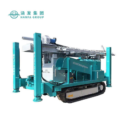 Product Description1.Drilling depth can reach 300m2.Steels quality is good, torque is large3.Easy operation, free-maintaining4.For various complex strutam, such as pebble bed, aggregate bed.5.Saving money, compact construction, easy moving6. Applicable to industry, residents drilling, ground drilling, large diameter, deep drilling, footage fast, flexible and efficient.Product ParametersModelHFJ180CHFJ200CHFJ300CHFJ400CHFJ500CMax. Drilling depth180m200m300m400m500mDrilling diameter90-254mm90-315mm105-325mm105-350mm105-350mmWorking air pressure1.05-2.46Mpa1.7-3.0Mpa1.05-3.45Mpa1.05-3.45Mpa1.05-4.5MpaAir consumption16-30m³/min17-35m3/min16-55m3/min16-55m3/min16-60m3/minDrilling rod length3m3m3m/4.5m/6m3m/4.5m/6m3m/4.5m/6mDrilling rod diameter76/89mm76/89mm89/102mm89/102mm89/102/114mmAxle pressure4T4T4T10T12TLifting force12T14T20T24T28TLifting speed2.5m/min2.5m/min3.0m/min3.0m/min3.0m/minPulling speed0.5-5m/min0.5-5m/min0.5-5m/min0.5-5m/min0.5-5m/minFast lifting speed18m/min18m/min30m/min25m/min25m/minFast pulling speed35m/min35m/min50m/min40m/min40m/minMax. rotation torque4200-5600Nm4500-6500Nm6500-8500Nm7500-9500Nm8500-11000NmRotation speed48-70r/min50-70r/min60-100r/min45-120r/min75-150r/minMud pump flow20L/min(optional)20L/min(optional)20L/min(optional)20L/min(optional)20L/min(optional)High hydraulic leg stroke1.5m1.5m1.5m1.5m1.5mWalking speed2.5Km/h2Km/h3.5Km/h3.5Km/h3.5Km/hClimbing capacity30°30°30°30°30°Weight4.7t5.4t8.5T10.5t11.5TDimension3600*1700*2150mm3900*1700*2150mm4800*2000*2450mm5700*2000*2550mm5800*2250*2550mmPowerQuanChai 55 kwYuchai 72 kw93KW105KW(6 cylinder)125kwWorking SiteCompany ProfileFAQ1. Are you a trading company or a manufacturer?We are a professional manufacturer. Our factory mainly produces water well drilling rigs, core drilling rigs, down-the-hole drilling rigs, pile drivers, etc. The products have been exported to hundreds of countries around the world and enjoy a high reputation all over the world.2. How is the quality of your machine?Our products pass strict quality inspections before they leave the factory to ensure that they are qualified before they are shipped.3. How to inspect the goods?1) Support customers to come to the factory for on-site inspection.2) Support customers to designate third-party companies to inspect goods.3) Support video inspection.4. Do you have after-sales service?Yes, we have a dedicated service team that will provide you with professional technical guidance. If you need, we can send our engineers to your workplace and provide training for your employees.5. How about quality assurance?We provide a one-year quality guarantee for the main machine of the machine.6. How long is your delivery cycle?1) In the case of stock, we can deliver the machine within 7 days.2) Under standard production, we can deliver the machine within 15-20 days.3) In the case of customization, we can deliver the machine within 20-25 days. /* March 10, 2023 17:59:20 */!function(){function s(e,r){var a,o={};try{e&&e.split(",").forEach(function(e,t){e&&(a=e.match(/(.*?):(.*)$/))&&1