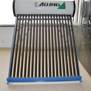 Basic Info.Model NO.SNF-18StructureCompact TypeCollector ComponentsGlass Vacuum TubeTrademarksunfocusSpecificationCE, ISO9001-2008,OriginHaining City, ZhejiangHS Code8419191000Product Description Specifications of compact solar water heater:Outer tank: 420mm or 460mmInner tank: 320mm or 360mmThe material of inner tank: Food-grade stainless steel: SUS 304-2B 0.40mmThe material of outer tank: Galvanized steel plate; Thickness: 0.31mmThe bracket: Galvanizing steel plate, thickness: 1.5mm(the option to the materials bracket: Aluminum alloy or, stainless steeThickness: 1.2mm)The casing of internal tank: Auto argon welding machineThe welding of inner tank: HF welding machineThe hole of inlet and outlet for water: Below the water tankThe string or pipes of inlet and outlet: Automatic argon welding for stainless steelThe coating of vacuum collector tube: High efficient heat absorption selective coating:SS-C/CU &AL/N (three target)The material of insulation: Polyurethane foam, thickness: 50mmPosition of installation: Sloping /horizon/stridingPackage: Standard exporting cartonCertificates: ISO9001-2008, CE and CCCOther auxiliaries: Silicone seals and rubbers and nuts and screws