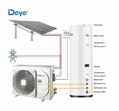 300L Solar AC/DC Air Source Hot Water Heat PU SOLAR AC/DC AIR SOURCE HOT WATER HEAT PUMPModel NameDRSA1-ACDC-41/200N1DRSA1-ACDC-41/300DRSA1-ACDC-55/500Water Tank ModelDSX-200GDSX-300GDSX-500GWater Tank Volume200L300L500LHeating Capacity4100W4100W5500WRated AC Grid Power208-240V/50-60Hz208-240V/50-60Hz208-240V/50-60HzSolar Panel Power(DC)80V-380V80V-380V80V-380VElectric Shock PreventionClass IClass IClass IWater Heating 15ºC to 55ºC88.1L/H88.1L/H115L/HRated Power Consumption972W972W1310WRated Current4.5A4.5A6.0ACOP4.224.224.2Max Current(AC)7.4A7.4A8.8AMax Current(DC)12.0A12.0A12.0AMax Power consumption1600W1600W1900WNoise Level52dB(A)52dB(A)54dB(A)RefrigerantR410AR410AR410AWater Proof LevelIPX4IPX4IPX4Outdoor Net/Gross Weight33.5/37.5kg33.5/37.5kg37/42kgOutdoor Net Dimention802*323*564mm802*323*564mm802*323*564mmOutdoor Package Dimention910*405*622mm910*405*622mm910*405*622mmWater Tank Net/Gross Weight60/68kg80/92kg138/152kgWater Tank DimentionΦ520×1600mmΦ580×1810mmΦ710×1865mmWater Tank Package Dimention550*550*1665mm605*605*1915mm740*740*1940Water Inlet/Outlet Connector SizeDN20DN20DN20Heat Exchanger Max. Pressure4.4MPa4.4MPa4.4MPaMax Discharge/Suction Pressure4.4/1.8MPa4.4/1.8MPa4.4/1.8MPaTest Condition:Ambient Temp.(DB/WB): 20ºC/15ºC, Water Temp.(In/Out): 15ºC/55ºCLead time1-5set8days >5set10days /* March 10, 2023 17:59:20 */!function(){function s(e,r){var a,o={};try{e&&e.split(",").forEach(function(e,t){e&&(a=e.match(/(.*?):(.*)$/))&&1