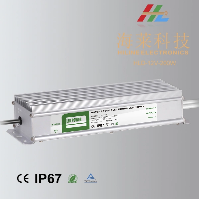 200W 12V 24V IP67 waterproof LED driver Features: 1.200W LED waterproof constant voltage driver 2. Universal AC input; 3. Fully encapsulated with IP67 level; 4. 100% burn-in test at full load; 5. Protections: short circuit/over load/over current; 6. Suitable for LED light applications. 7. OEM is acceptable, 2 years of quality warranty; 200W 12V 24V IP67 waterproof LED driver Specifications: MODELHLD-12V-200WHLD-24V-200WOUTPUTRated DC voltage12V24VRated current16.66A8.33ACurrent range0~16.66A0~8.33ARated Power200WVoltage tolerance12±0.5V24±0.5VRipple & Noise200mVp-pLoad regulation±2%Setup, Rise time50ms/230VACHold up time20ms/230VACINPUTVoltage range170~260VAC;Frequency range47~63HzEfficiency (Typ.)>80%>83%Leakage current0.25mA/240VACPROTECTIONOver Current110%~150%Protection type: Hiccup modeShort circuitShort circuit protectionENVIRONMENTWorking TEMP.-20ºC~50ºCStorage TEMP.-40ºC~80ºCWorking Humidity20~90% RH non condensing, refer to IP67Vibration10~500Hz,2G 10min/1cycle,period for 60min,each along X,Y,Z axesTEMP. coefficient±0.03%/ºC(0~50ºC)SAFETY & EMCSafety StandardsIP67 approved; Design refer to LVD EN61347-2-13:2005,EN61347-1:2008Withstand VoltageI/P-O/P:3KVAC, I/P-COVER: 3KVAC , O/P-COVER:500VACIsolation ResistanceI/P-O/P:>100M Ohms/500VDC/25ºC/70% RHEMCEN55015:2006/A2:2009,EN61000-3-2:2006/A2:2009,EN61000-3-3:20OTHERSMTBF08,EN61547:200950KHours(25ºC)Dimension273*68*55mm(L*W*H)Weight1.375Kg,10pcs/14.64Kg/0.017CBM/* January 22, 2024 19:08:37 */!function(){function s(e,r){var a,o={};try{e&&e.split(",").forEach(function(e,t){e&&(a=e.match(/(.*?):(.*)$/))&&1