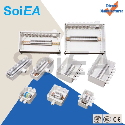 DescriptionTerminal boxes are used for projects that require the integration of cables from multiple instruments into one convenient location. A terminal box consists of a fibreglass or diecast aluminium enclosure with a variety of size and switching options.Terminal blocks increase safety by grounding, isolating, and protecting the other components in the electrical circuit.Terminal blocks are available with finger-safe connections to prevent electrical shock. And, terminal blocks can also provide test points, which add even more safety to the circuit. These terminal boxes include the multi-level of circuits with that single box. ApplicationIP67 waterproof polycarbonate enclosure with knockouts.Molded with metric knock-outs for easy removal for cable entry.Tough polycarbonate material for superior impact resistance.Suitable to be used as terminal junction box, control box, wireless network devices and so on.Mountable on walls by using the cover holes for fastening.Protection class : IP67 Operating temperature : -20ºC ~ +75ºCRecommended torque : 1N·m ~ 1.5N·mFeatureHighly resistant and least likely to deteriorate. Minimal weight change and usable depending on conditions. Some weight and dimensional changes and usable for a short time.Not usable due to swelling or dissolution.-------------------------------------------------------------------------------------------------------------------------------------------------------- /* January 22, 2024 19:08:37 */!function(){function s(e,r){var a,o={};try{e&&e.split(",").forEach(function(e,t){e&&(a=e.match(/(.*?):(.*)$/))&&1