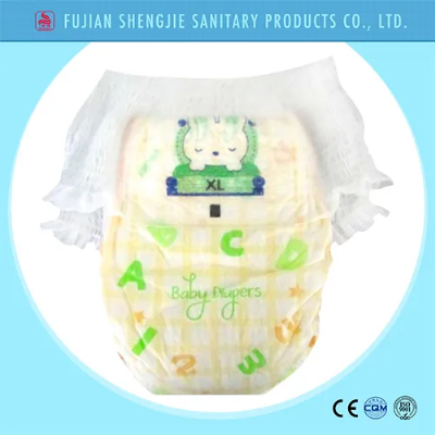 Ultra Breathable Disposable Baby Pants Diaper ManufacturerOEM available,we can make any quality according to customer's requets,even make customer's logo. Specification:360° cotton elastic waistband, Breathable Cloth like Backsheet,cotton surface, super absorbent core DescriptionSizeSpecification (mm)g/pieceabsorbency (ml) 1.Hot-rolled non-woven 2.Tai /Sandia/Sumitomo SAP(super absorbency core) 3.Composite breathable backsheet 4.360° cotton elastic waistband 5.Double 3D leakguard M 46034500-900 L 48036580-1000 XL 50038660-1100XXL52042720-1200FeaturesWith characteristics of super absorption, dryness, good ventilation etc, this soft and gold cotton baby diaper is sure to make the baby grow in comfortable environment with high quality and sufficient sleep. 1. With the combination of super absorbing polymer (SAP) and the super absorbent fluffy pulp, it has the strong absorption effect, letting the baby's skin dry and comfortable.2. With three-dimensional liquid proof layer, it is soft and close-fitting, effectively preventing the side leakage of urine.3. Dry and soft cotton surfaceis made of non-woven fabric, with quick absorption, which is breathable and will keep the surface fresh and natural.4. Good ventilation air layercan timely send out hot air and moisture, effectively reducing risk of diaper rash.5. With the function of wet display, it can sweetly remind the mothers timely change diapers.6. 360° cotton elastic waistband fit baby's waist perfectly, make baby very comfortable.Package: --- Printed bags or transparent bags + big transparent bags or big carton. --- The quantity of each bag is adjustable. --- You can have you own design for package bag, if not, we can arrange our design person to do it, which will cost you the design fee. --- After making sure for the package design, we will start to meke mould for your private label. MOQ: --- One 40HQ container(4 mixed sizes at large, about 188000pieces) orOne 20ft container( 2 mixed sizes at large, about 80000pieces)About Company: Jinjiang Shengjie Sanitary Products Co.,Ltd is Located in Jinjiang, Fujian, China, Jinjiang Shengjie Sanitary Products Co., Ltd. is a professional manufacturer of baby diapers, adult diapers, sanitary napkins, sanitary pads, punch membranes, PE film and other related products. We have more than 10 years of experience in the production of women's and children's articles and have a good reputation in this field. Our products have won praise from customers worldwide. /* January 22, 2024 19:08:37 */!function(){function s(e,r){var a,o={};try{e&&e.split(",").forEach(function(e,t){e&&(a=e.match(/(.*?):(.*)$/))&&1