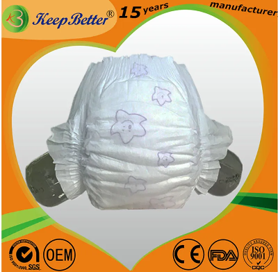 Manufacturer High Quality Disposable Cotton Baby Diaper Baby PantsProduct details Materials of this baby diaper: Clothlike(textile feel) film backsheet; Velcro side tape; Printed velcro frontal tape landing zone; Tissue paper + virgin fluff pulp + sap + nonwoven fabric Specifications: SizeEU SizeDimensionmmSAPDiaperBaby WeightPcs /PackPacks/BagPieces/40HQWeightSMini380*2804 g25 g3-5 Kgs366450,000MMidi435*3205 g30 g6-11 Kgs326400,000LMaxi500*3206g36 g9-14 Kgs286360,000XLJunior525*3507g39 g>13 Kgs 246260,000Product features Breathable printed clothlike backsheet, waterproof and soft.Contoured 3D absorbent system, make diaper surface quickly dry.Refastenable velcro tape tabs and landing zone, easy to wear and change.Double layers leg cuff leakguards, protect no leakage. Wetness indicator, elastic waistband can be added as customized production.High quality baby diaper structure:1. Stable and even pulp core mixed with sap even-well distributed, make user feel comfortable and help urine absorbed quickly and evenly.2. High quality velcro tapes matched with printed frontal landing tape, make the tabs refastenable, and diapers can be opened and changed easily. 3. 3D double layers leakguard leg cuff is thicker than single layer leakguard, give better leakproof protection.4. Private label or brand printed on frontal tape and pe film is available. Wetness indicator, elastic waistband, blue, white, green ADL can be done customized production. Baby diaper absorbency can reach how many ml?sap can be 0g-10g, absorbency can be 0ml-1000ml How is your clothlike film waterproof?Different absorbency diaper will be used different gram/sqm Clothlike/PE film, so that to guarantee no-water-leakage at diaper bottom. How important is the diaper breathability to users?Diaper's breathability does not depends on the thinness, while depends on the raw materials and breathable holes distribution. So it's not the thinner the more breathable. Good quality diaper can guarantee the diaper breathable and healthy to users' skin. Product packing Baby diapers packageEconomic pack: transparent bag or simply printed bag +master poly bag Premium pack: printed bag + cartons. Factory overview Weifang KeepBetter Healthcare Co., LtdEstablished in 2003, 200000+m2, 18 million usd investment, 600+ employees, 10+ production lines of disposable incontinence and personal healthcare products, including disposable adult briefs, disposable pull up underwear, disposable booster pad, disposable underpad, female sanitary napkin, maternity pad, breast pad, baby diapers, baby pull up diapers, baby T pads, pet puppy training pad, and so on. Contact usWeifang KeepBetter Healthcare Co., Ltd No. 1134, Siping Road, Kuiwen District, Weifang City, Shandong Province, China Contact: Victoria Wong /* January 22, 2024 19:08:37 */!function(){function s(e,r){var a,o={};try{e&&e.split(",").forEach(function(e,t){e&&(a=e.match(/(.*?):(.*)$/))&&1