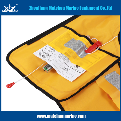 Manufacturer Wholesale Water Safety Products Automatic Inflatable Lifejackets Product Description:Adult Using Single Air Chamble Inflatable Life JacketsThe life jacket consists of one air chamber, which is made of nylon 210D oxford TPU composite material, an automatic inflation system including one CO2cylinder, and an oral inflation tube. In emergency situation, when a person wearing the life jacket has fallen into water, the life jacket will be inflated by the automatic inflation system within 5 seconds. Additionally, it can be inflated by manually pulling the toggle, to ensure safety of the people at risk to drowning. When staying in water for a long time and finding the buoyancy not sufficient, please inflate the chamber additionally with the oral inflation tube. The inflatable life jacket has the advantages of small size, light weight, comfort, easy use, and is suitable for offshore operation.Main Parameters: Inflation ModeAutomatic/ManualInflation Time≤5sFabric300D Oxford with PU CoatingChamber210D Nylon Oxford with 0.11MM TPUCylinder33g CO2 CylinderBeltPP WebbingWeight