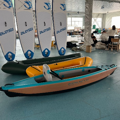 Kayaks Drop Stitch Inflatable Rowing Boat Kayak Water Boat for Water SportsDetailed PhotosFeatures:Kayak is made for water sports enthusiasts, lightweight and inflatable design, easy to carry. A bow storage design and three big fins, faster. The Inflatable Kayak is suitable for pool, lake, calm rivers or rivers inshore.High impact resistance, simple maintenance, heavy load, less maintenance work and separate air chamber make inflatable boat become a good choice. Kayak main materials are Drop stitch and PVC,The tube and floor are made of Drop stitch material, with PVC decorative side edges and bottom reinforcement.There are a total of 3 air chambers, one on each side of the float and one on the floor.1.Handle:The handle has soft handle and hard handle. The soft handle made of PVC. The hard handle made of plastic. On one side at least 2 handles.This kind of hard handle is convenient for carrying boats.2.D-ring:It is very strong and can be firmly tied to the lifeline. You can safely grasp the lifeline when the water is very urgent.3.Hojin:Used to tie with the inflatable seats.valve:The colors of valves are gray and black. Look at our valves. They are all customized by our factory. Our boat has at least four valves, that is, four chambers. Why does our boat have so many chambers?Yes. For the safety of users. There may be air leakage during sailing. If there is only one chamber, the boat may not be used. But we have at least four chambers, one on the floor and the rest on the pontoon. One chamber leaks, which will not affect the sailing of the boat.Bottom:Double layer reinforcement at the bottom makes the ship stronger.Product Description Standard equipment:1. One kayak paddle2. Foot pump3. Repairing kits4. Carrying bagOptional equipment:kayak seatCanopyanchorfishing rod Product Description The main material of our boat is PVC,We have many colors to choose. In addition, the thickness of PVC is 0.7MM, 0.9MM, 1.2MM and 1.5MM, and now 0.9MM and 1.2MM are the most popular.If you want your boat to be stronger, you can also choose to use the raw material of Hypalon.The strength of PVC with different thickness is different. I think this simple reason is known to everyone. The thicker the PVC, the stronger the boat will be..Product ParametersWe have many sizes and support customization. MODELLENGTH (CM)WIDTH (CM)HIGHTH (CM)GROSS WEIGHT (KG)WEIGHT CAPACITY (KG)CHAMBERSPACKING SIZEAK-3703708531251203114×57×27AK-4204208531321803114×65×30AK-4804808531452403120×70×40This is our standard size.Of course, we can also customize the size. You only need to tell us how many people use the boat, and we will recommend the appropriate size for you.To ensure your safety, we have used multiple valve designs. Certifications its size has ce certificate.model 270,290,320,360,380,420,460,520,550,580 and so on.boat under 250cm don't need CE certificates. These certificates show that our products are of excellent quality and meet the European quality standards, so you do not have to worry about being unable to sell in the European market.Company Profile Qing Dao Jia Hai Boat Co.,LTD is a professionalmanufacture in designing,producting and selling inflatable stand up Board and inflatable boat. including fiberglass boats,sports boat,rafting boat, fishing boat, kayak.our factory was established in 2010,located in Qingdao city ,in china .many famous brands boards are being manufactured in our factory. All our products meet international quality standards and have the CE report. As a result of our high quality products and outstanding customer service, the products are exported to lots of countries and regions in the word. cici Packaging & Shipping Our Advantages*Powerful and efficient production capacity.* Jiahai boats is the top 10 manufacturer to produce more than 20,000 pieces paddle boards per year. OEM Service based on our 10000 square meter factory . *Reliable supplier.* Our company is the early beginner in China to produce the drop-stitch inflatable products.-iSUP and Airtrack and PVC Inflatable boat and kayak. 13 Years manufacturing experience, export to Europe, North America, Australia and New Zealand. *Quality control.* Starting - end quality control management, we do Quality control into our daily production to keep the quality and safety of each of our product. Strict quality control, big & stable OEM production capacity. *Design and customized service.* When you need design the inflatable paddle boards, our skilled design team will support you absolutely. You could refer some of our OEM designs or refer other design by google, then give us the boards graphic, color, which should match your logo. Our design team are constantly developing and reviewing production to ensure every design specification is translated and crafted exactly to the production. *24 Hours sales service & ONE-STOP* Quick-action sales service, good sales means the products' engineer, we are your supporter to open the new market in the rapid economic enviro